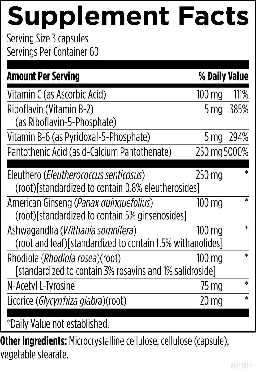 Adrenotone™ - это комбинация стандартизированных адаптогенных трав и питательных веществ, которые, как известно, способствуют омоложению надпочечников. Этот продукт разработан для поддержки здорового метаболизма кортизола, функции гипоталамуса и гипофиза (ось HPTA), а также выработки катехоламинов (дофамина, норэпинефрина и эпинефрина).*Рекомендуемое применение: Принимайте 3 капсулы в день во время еды или по указанию вашего лечащего врача. (Рекомендуется раздельное употребление): Проконсультируйтесь с вашим лечащим врачом перед применением, если вы беременны или кормите грудью, если у вас гипертония или диабет, или если у вас были заболевания почек или печени. Прекратите использование и проконсультируйтесь с вашим лечащим врачом, если вы испытываете бессонницу, головную боль или учащенное сердцебиение.* Эти заявления не были оценены Управлением по контролю качества пищевых продуктов и лекарственных средств. Данный продукт не предназначен для диагностики, лечения, излечения или профилактики каких-либо заболеваний.