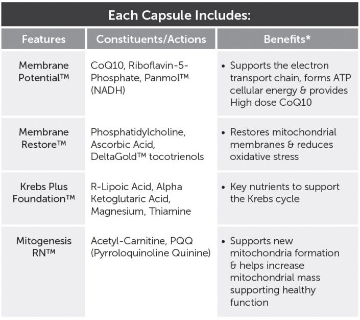На здоровье митохондрий может влиять множество факторов окружающей среды. Для улучшения работы митохондрий необходимо поддерживать как их количество, так и их функции. ATP 360™ был разработан для обеспечения полной поддержки митохондрий, включая содействие нормальному росту митохондрий, поддержку здоровой митохондриальной мембраны и поставку необходимых кофакторов для оптимального производства клеточной энергии. Предварительные исследования in vitro показали, что ATP 360™ увеличивает массу митохондрий, способствует выработке АТФ и помогает обеспечить защиту митохондрий при воздействии окислительного стресса и низкого содержания кислорода.