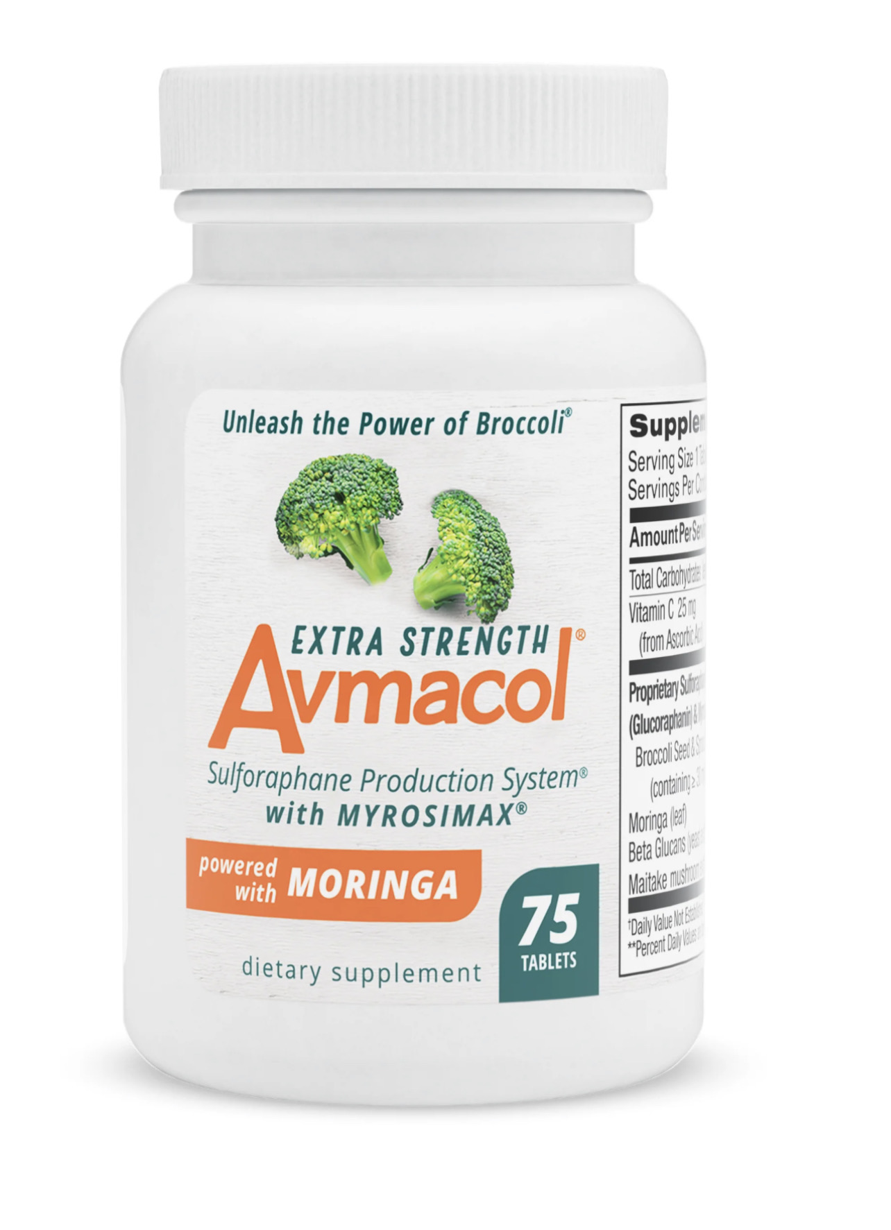 Avmacol® Extra Strength - это запатентованная, производящая сульфорафан добавка, которая работает в сочетании с экстрактом грибов Майтаке (Grifola frondosa), чтобы поддержать естественный процесс детоксикации организма лучше, чем сульфорафан сам по себе 1. Avmacol® Extra Strength обеспечивает глюкорафанин (глюкозинолат сульфорафана) и активный фермент мирозиназы, которые являются необходимыми ингредиентами для производства сульфорафана. Было установлено, что экстракт гриба Майтаке обеспечивает иммунную поддержку, стимулируя функцию нейтрофилов и естественную активность клеток-убийц*.