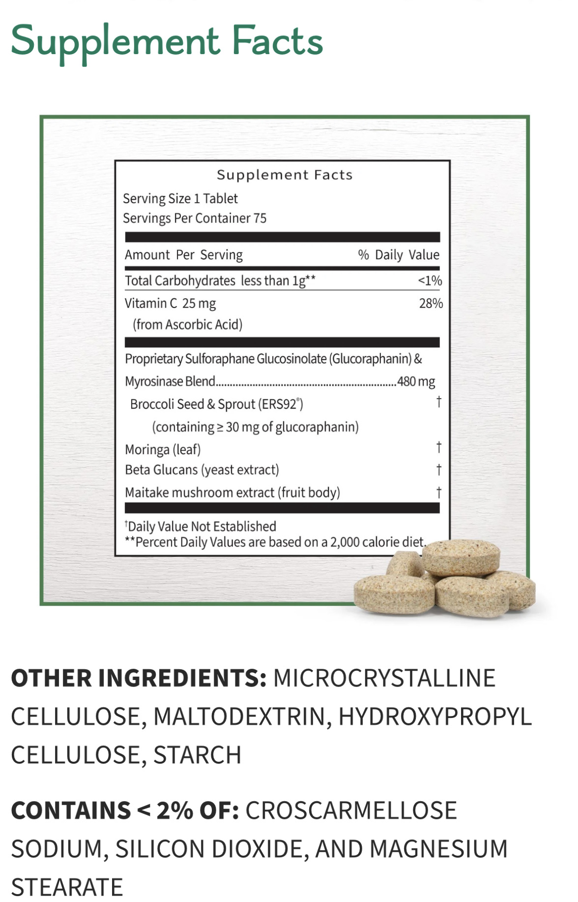 Сульфорафан способствует естественному процессу детоксикации организма в связи с определенными опасностями для окружающей среды, которые содержатся в воздухе, которым вы дышите, пище, которую вы едите, и воде, которую вы пьете. Исследования показали, что сульфорафан также поддерживает защиту организма от окислительного стресса и повреждения клеток*.