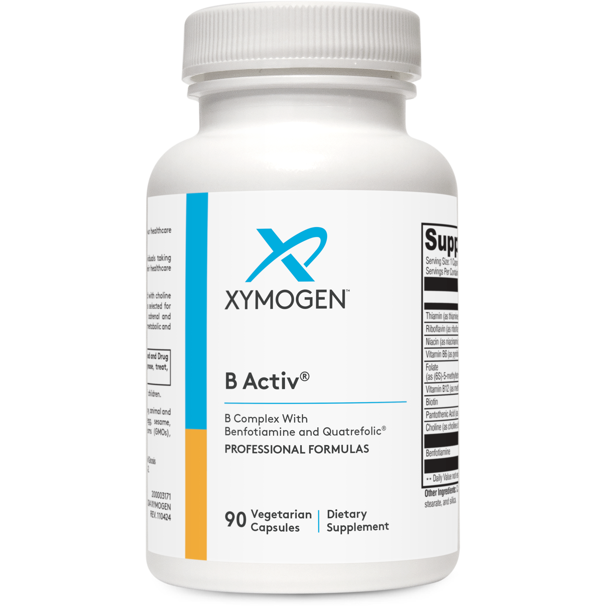B Activ® содержит весь спектр витаминов группы B для поддержки функций надпочечников, неврологии и стресса. В состав входят активированные формы витаминов B2, B6 и B12; бенфотиамин, жирорастворимая, более физиологически активная форма тиамина; и фолат в форме Quatrefolic®, который обладает большей стабильностью, растворимостью и биодоступностью по сравнению с формами кальциевой соли 5-MTHF*