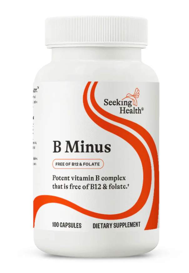 B-Minus идеально подходит для тех, у кого есть проблемы с переносимостью метилированных витаминов группы В, позволяя добавлять в свой рацион неметилированные или предпочтительные формы B12 и фолиевой кислоты по мере необходимости. Его также можно комбинировать с дозами метилфолата и витамина В12, которые адаптированы к индивидуальным потребностям человека для большей гибкости и индивидуализации. Для комплексного комплекса В с витамином В12 и метилфолатом рассмотрим наш комплекс В Плюс.*
