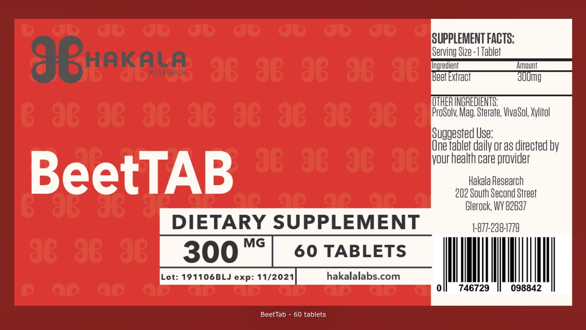 Компания Hakala Research создала BeetTab, который содержит 300 мг экстракта свеклы. Наша свекла производится в Соединенных Штатах Сабинса. Каждая таблетка не содержит ГМО, красителей, глютена и кукурузы. Медицинские работники рекомендуют принимать от 1-3 таблеток в день.