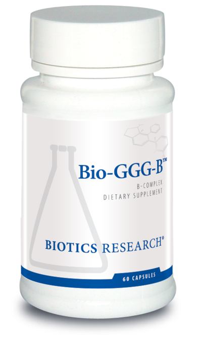 Bio-GGG-B™ is a multi B-vitamin complex, supplying vitamins B1, B2, niacin, B6, B12, folate, biotin and pantothenic acid, with emphasis on riboflavin (Vitamin B2), also referred to as Vitamin G. It is fortified with additional synergists, including Vitamin C, inositol, PABA (para-aminobenzoic acid), & choline, and also includes trimethylglycine, as well as organ/glandular specific support (neonatal bovine liver and lamb brain).