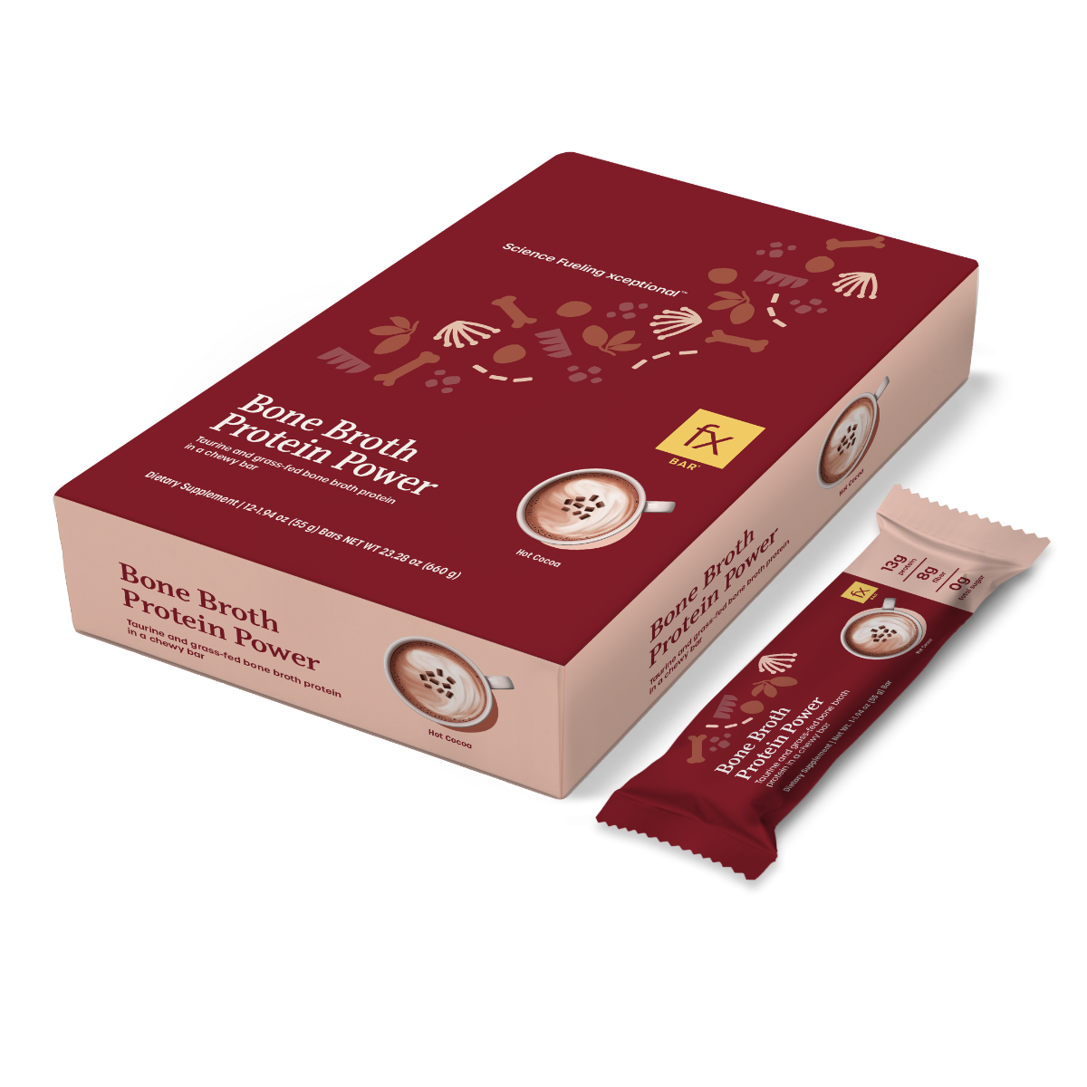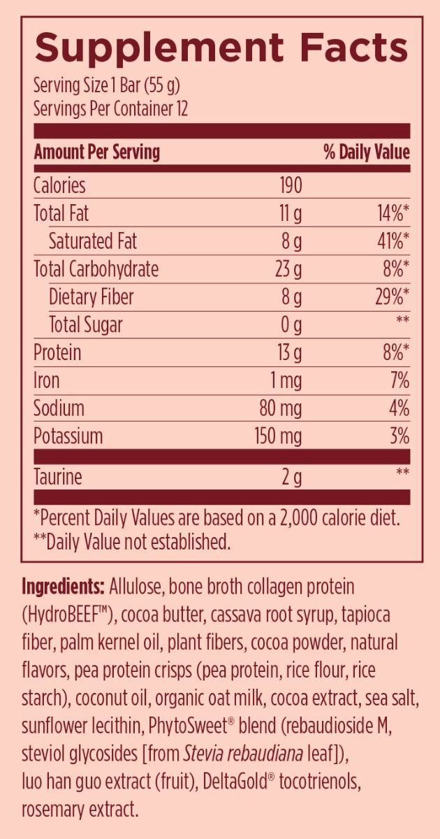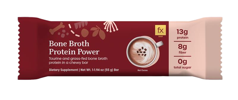 Bone Broth Protein Power - это вкусный и питательный батончик функциональной добавки с впечатляющими 13 г белка на порцию. Этот батончик со вкусом горячего какао имеет шоколадное покрытие из овсяного молока и жевательную шоколадную белковую начинку. Протеиновая смесь уникальным образом сочетает в себе гидролизованный коллагеновый белок из костного бульона (HydroBEEF™) и гороховые протеиновые чипсы (гороховый белок и рисовая мука) для создания комплексного и взаимодополняющего аминокислотного профиля.