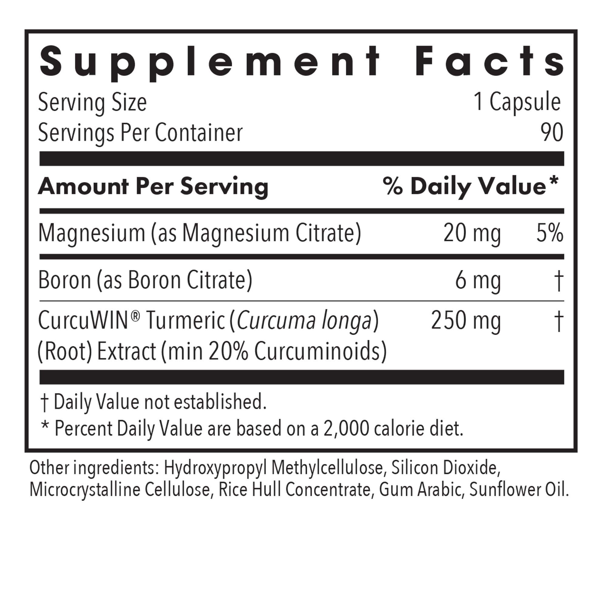 Борный сустав с CurcuWIN® сочетает в себе клинически изученный куркумин CurcuWIN® с бором и магнием для поддержания комфорта, подвижности и здоровья костей суставов. * CurcuWIN® - это высокобиодоступный куркумин (экстракт куркумы) с использованием запатентованной системы доставки питательных веществ UltraSOL® для превосходного усвоения, содержащий не менее 20% куркуминоидов для восстановления и комфорта, а бор и магний поддерживают целостность хряща, баланс цитокинов и функции опорно-двигательного аппарата.