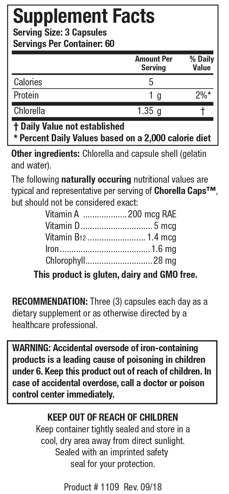 Chlorella CapsTM поставляет высококачественную хлореллу, одноклеточные водоросли, которые богаты природными фитоэлементами, включая хлорофилл и каротиноиды. Хлорелла может поддерживать выведение токсинов и является источником витамина D. Он также поддерживает слизистую оболовку желудочно-кишечного тракта, а также обеспечивает иммуномодулирующие свойства.