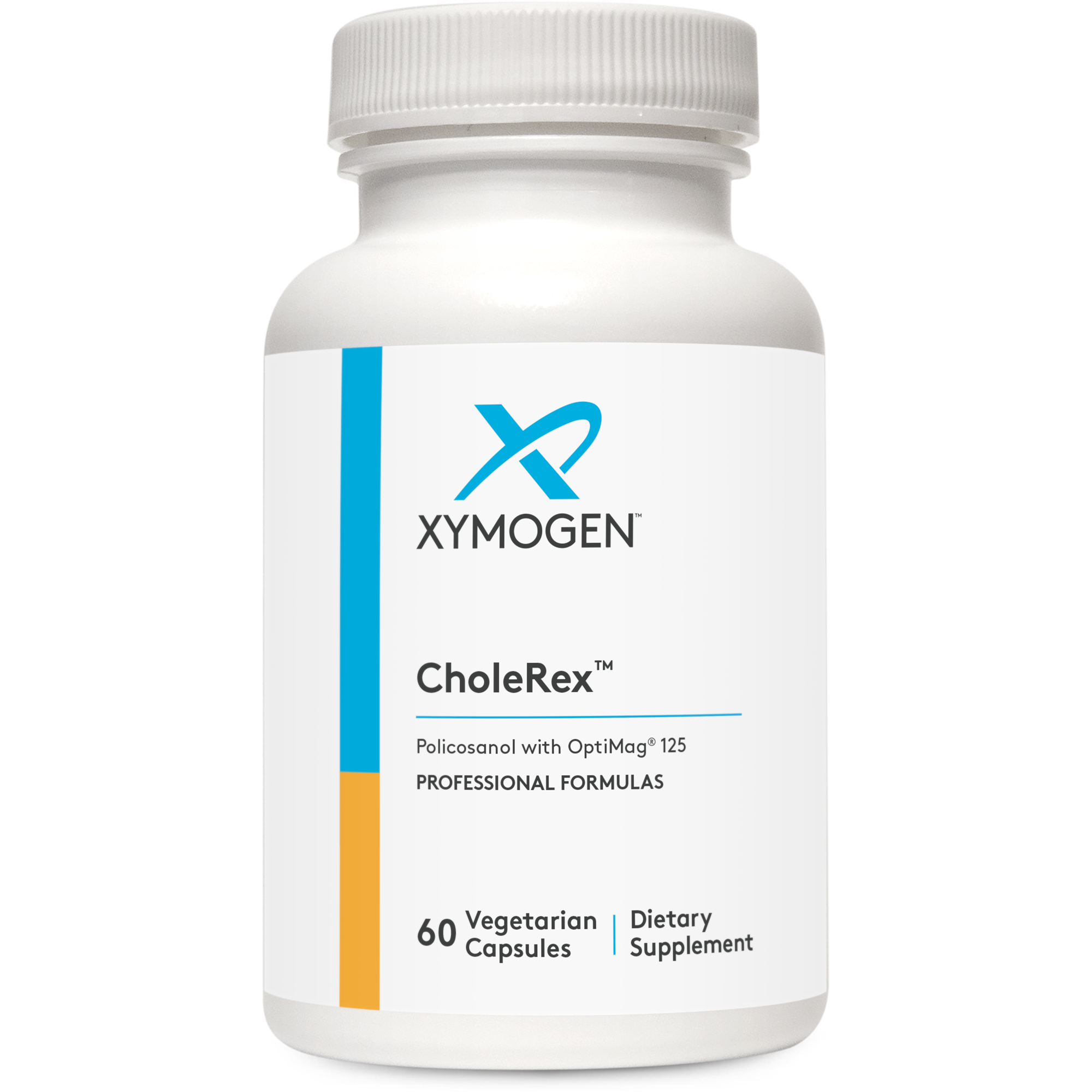 В состав CholeRex™ входит поликозанол - вещество, выделенное из воска сахарного тростника, которое используется для поддержки липидного обмена в крови. Он сочетается с OptiMag® 125, запатентованной компанией XYMOGEN смесью двух хелатов магния Albion®. Эти формы магния хорошо переносятся и обладают отличной биодоступностью. Считается, что сочетание поликозанола и OptiMag 125 дополняет кардиопротекторные свойства каждого компонента*