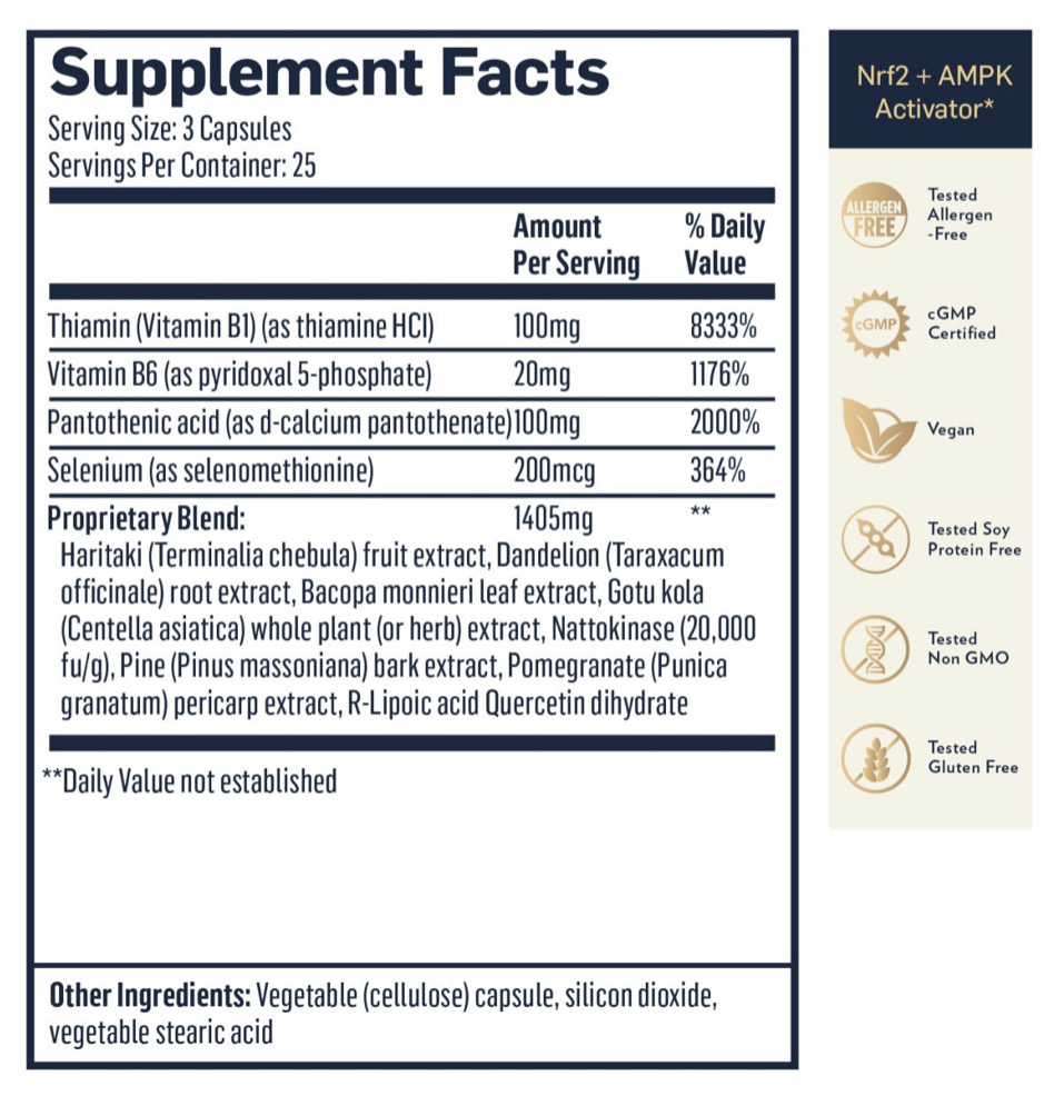 Мощные полифенолы в этой запатентованной формуле могут помочь компенсировать загрязнение окружающей среды и поддержать вашу систему глутатиона. Они также могут помочь активировать главный антиоксидантный "переключатель" вашего организма, называемый Nrf2, который регулирует сотни генов, участвующих в детоксикации.