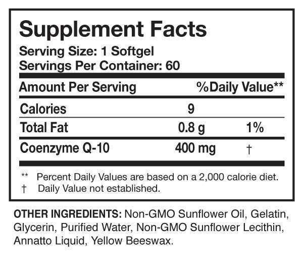 Мы с гордостью представляем нашу усовершенствованную формулу CoQ10 Power™, которая теперь не содержит ГМО и сои. Наша формула включает в себя липиды подсолнечника без ГМО и новый высококачественный натуральный краситель из растения аннато, чтобы обеспечить этот сверхчистый продукт с высокой степенью усвоения.
