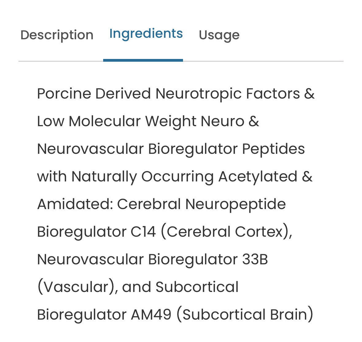 CogniPep - это новая добавка, предназначенная для улучшения здоровья мозга и умственной функции. Его инновационная формула содержит нейротропные факторы свиного происхождения и низкомолекулярные биорегуляторные пептиды, включая церебральный нейропептид C14, который поддерживает здоровую нейронную связь, нейрососудистый биорегулятор 33B для укрепления здоровья сосудов и субкортикальный биорегулятор AMM49 для поддержания сбалансированной субкорковой функции мозга. Вместе эти компоненты работают синергетически, чтобы стимулировать умственную остроту, память и ясность, поддерживая при этом естественные процессы мозга. Разработанный для тех, кто отдает приоритет когнитивному благополучию, CogniPep предлагает надежное, научно обоснованное решение, которое поможет вам работать наилучшим образом каждый день.