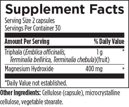 В Colon Rx™ используются два ингредиента, подтвержденные исследованиями, которые помогают улучшить моторику кишечника и тонус кишечника у людей с периодическими запорами.* Гидроксид магния, известный ингредиент, действующий по принципу осмоса, притягивает воду из окружающих тканей в кишечник; такое локальное увеличение воды не только смягчает стул, но и положительно влияет на объем каловых масс, что способствует моторике кишечника.* В аюрведической традиции Трипхала, классическая формула, состоит из трех плодов: амалаки, бибхитаки и харитаки. Амалаки (известный как индийский крыжовник или амла) считается одной из лучших омолаживающих трав. Харитаки, помимо слабительного эффекта, обладает вяжущими свойствами и уравновешивает Вату. Бибхитаки - прекрасное омолаживающее средство, обладающее как слабительными, так и вяжущими свойствами. Он уравновешивает дошу Капха. Colon Rx™ можно использовать в течение коротких периодов времени как быстродействующее мягкое слабительное средство при периодических запорах или как ежедневный тоник для кишечника.* Рекомендации по применению: принимайте 2 капсулы с 8 унциями воды перед сном или по указанию вашего лечащего врача.* Эти заявления не были оценены Управлением по контролю качества пищевых продуктов и лекарственных средств. Данный продукт не предназначен для диагностики, лечения, излечения или профилактики каких-либо заболеваний.