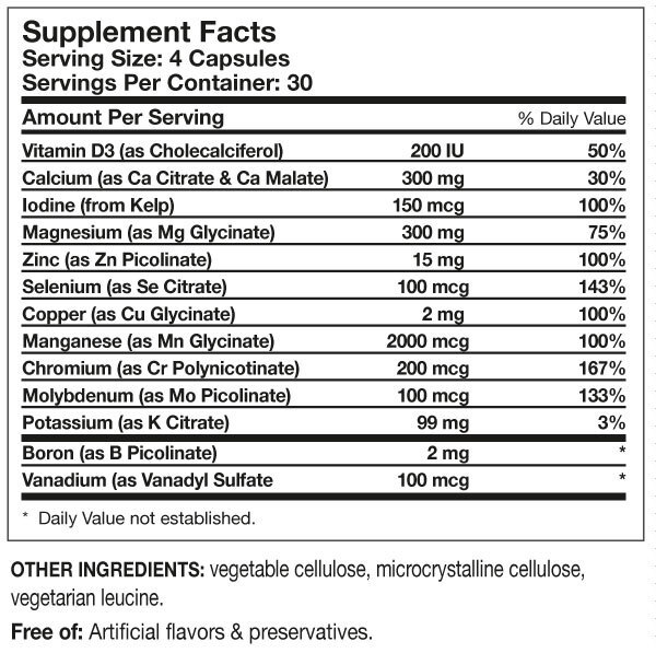 Core Minerals™ содержит двенадцать минералов плюс витамин D3 в сбалансированном мультиминеральном комплексе, каждый минерал в легко усвояемой форме. Эта формула без железа включает витамин D3, помогающий усвоению кальция.