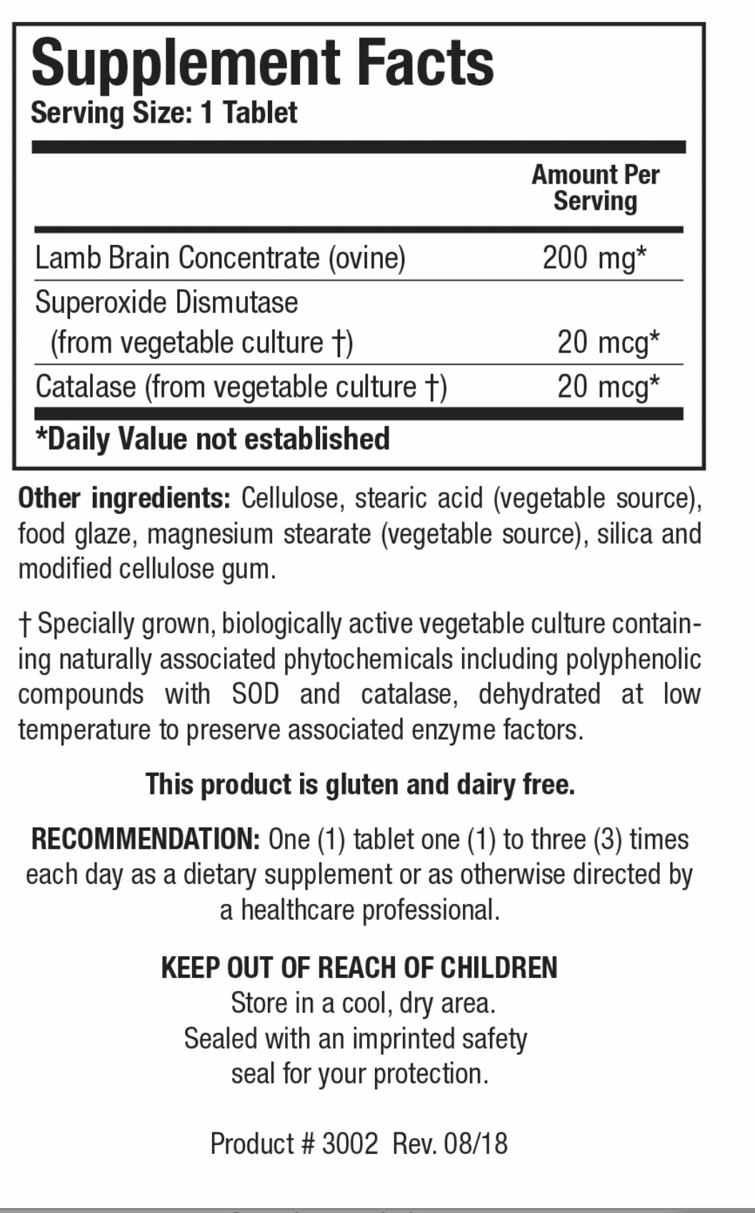 Cytozyme-B™ обеспечивает специфическую поддержку органов/желёз в виде концентрата мозга ягнёнка в сочетании с СОД и каталазой, важными антиоксидантными ферментами.