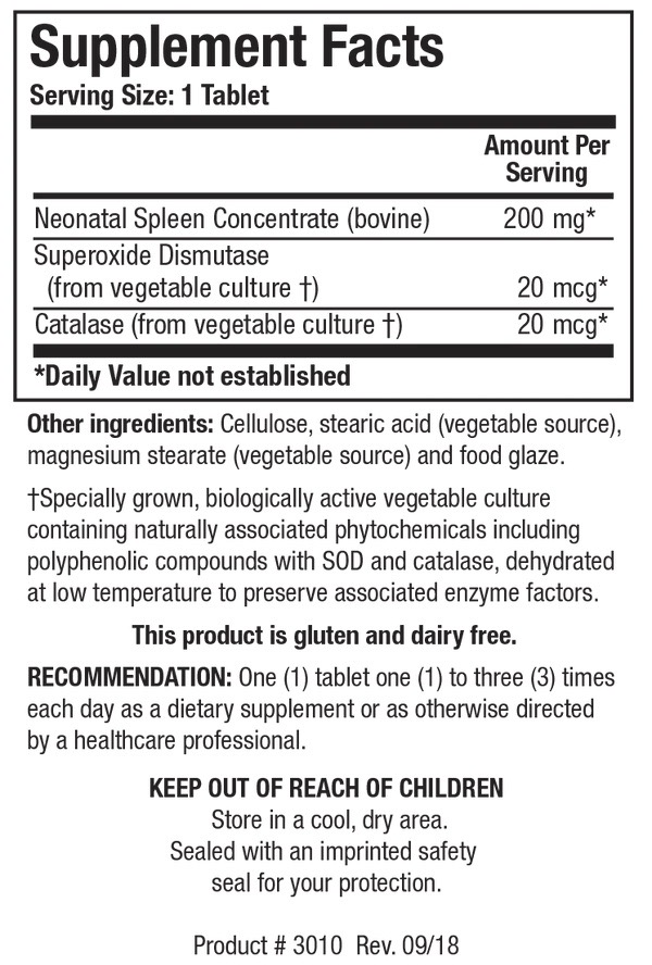 Cytozyme-SP™ обеспечивает органоспецифическую поддержку в виде концентрата неонатальной селезенки (бычьей) в сочетании с СОД и каталазой, важными антиоксидантными ферментами.