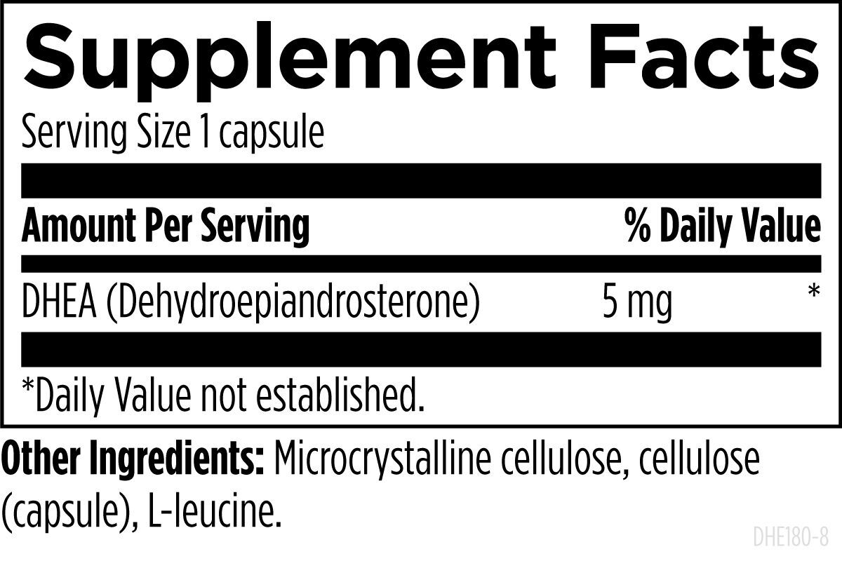 DHEA 5 мг содержит 5 мг дегидроэпиандростерона (DHEA) в одной капсуле для синтеза важных гормонов и для различных потенциальных физиологических реакций, таких как здоровое старение, постоянная энергия и жизненная сила, сбалансированная реакция на стресс, а также целостность мышц и жировой обмен*