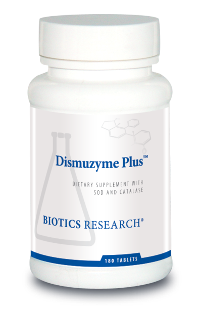 Dismuzyme Plus™ содержит супероксиддисмутазу (СОД) и каталазу, полученные из запатентованной растительной культуры компании Biotics Research Corporation. Свободные радикалы вызывают биологические повреждения, как правило, в результате окислительных процессов. СОД является основным ферментом, уничтожающим свободные радикалы в организме человека. Она преобразует супероксидные радикалы в перекись водорода и кислород. Аналогичным образом каталаза преобразует перекись водорода в кислород и воду, дополняя тем самым деятельность СОД. Эти действия являются важнейшей частью клеточного механизма антиоксидантной защиты, и благодаря этой функции данные соединения играют роль в замедлении процесса старения.