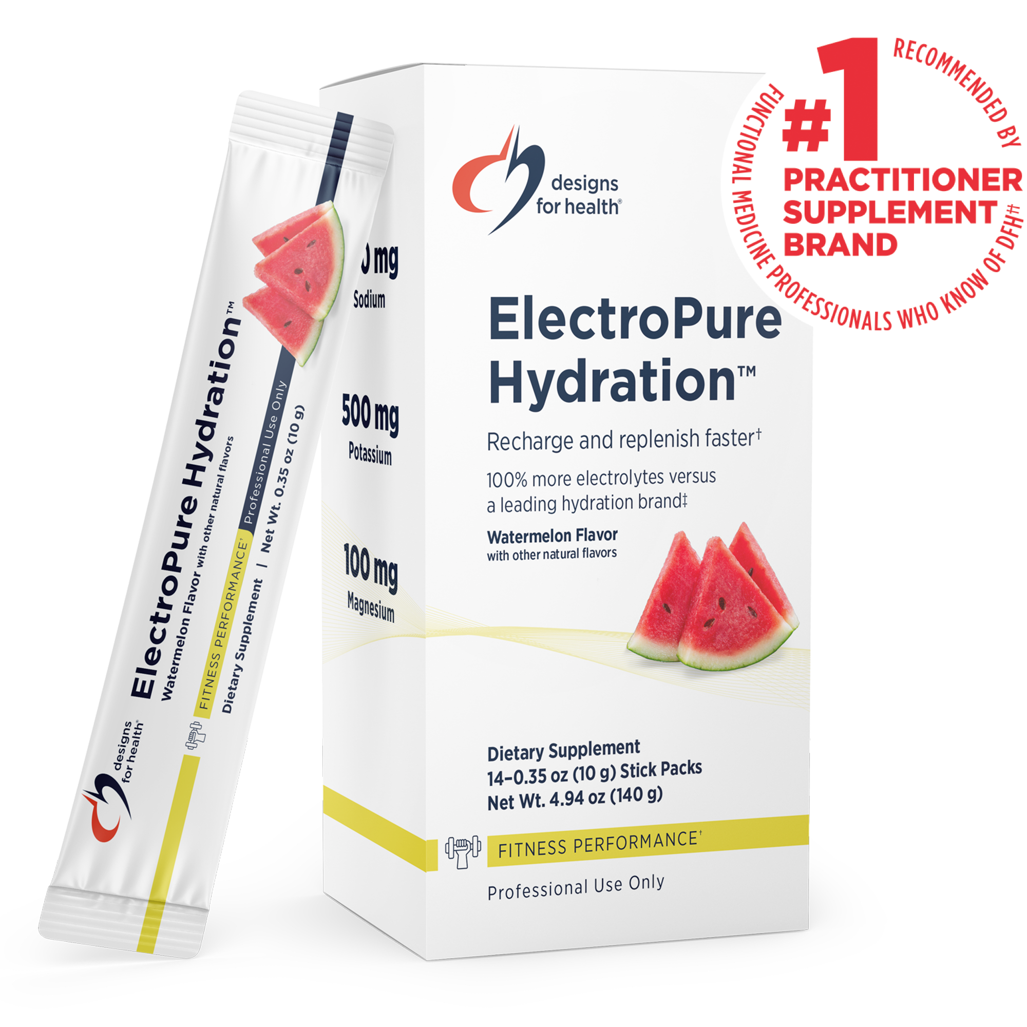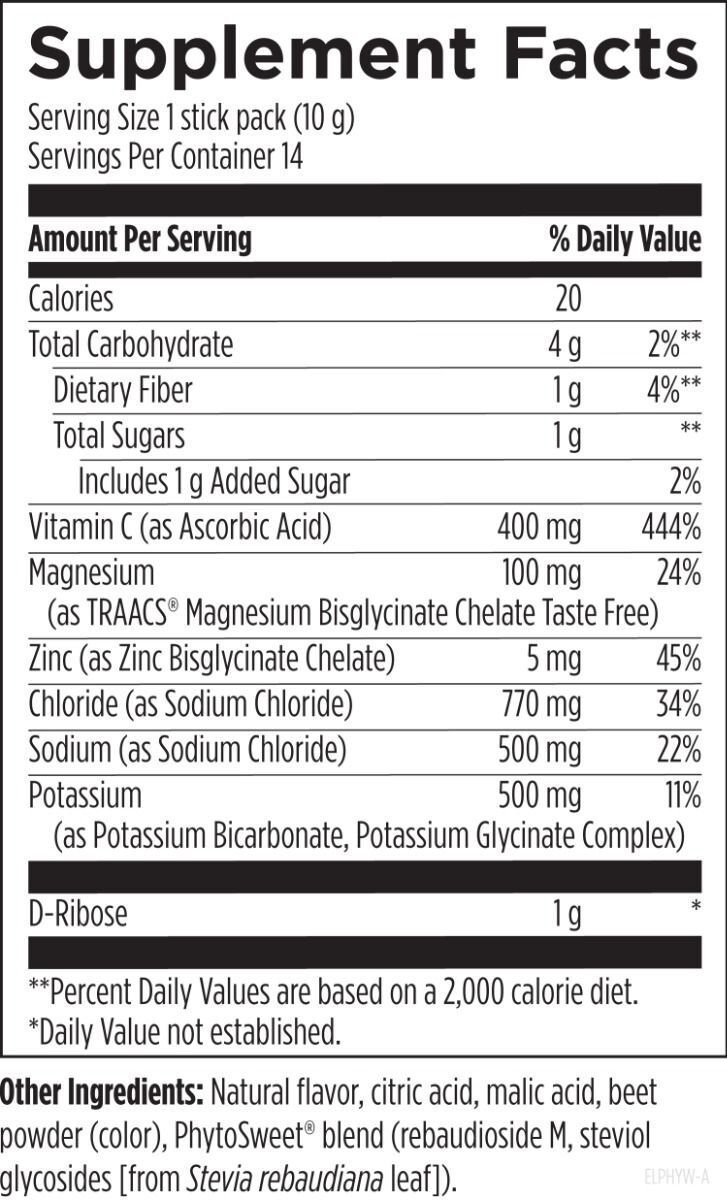 ElectroPure Hydration™ - это вкусная смесь электролитных напитков, разработанная для поддержки правильной гидратации, спортивных результатов и работы мышц.* Она содержит на 100% больше электролитов по сравнению с ведущими брендами гидратационных напитков,† с полным спектром электролитов для комплексной поддержки.* ElectroPure Hydration™ имеет уникальное соотношение натрия и калия 1:1 для обеспечения оптимального электролитного баланса.* В состав также входят D-рибоза, витамин C и цинк, которые поддерживают выработку клеточной энергии, антиоксидантный статус, восстановление после тренировок и здоровое функционирование мышц после физической активности.* Эта формула помогает восполнить электролиты, потерянные с потом, и может быть полезна физически активным людям, тем, кто посещает сауны, живет или работает в жарком климате или периодически страдает диареей.*