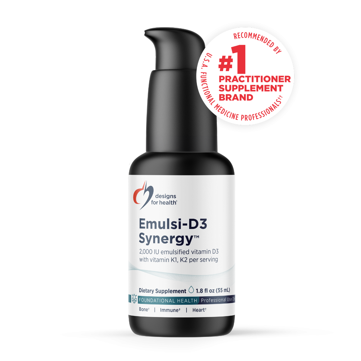 Emulsi-D3 Synergy™ - это концентрированный жидкий витамин D с высокой биодоступностью, содержащий 50 мкг (2000 МЕ) на 1 мл (одна полная пипетка), а также 200 мкг витамина K1 и 40 мкг витамина K2. Это удобная, приятная на вкус и легко смешиваемая формула. Витамины D и K необходимы для здоровья костей и артерий, а также для поддержания иммунной функции.* Витамины K1 и K2 способствуют отложению кальция в костях, а не в мягких тканях, таких как стенки артерий и почки.*