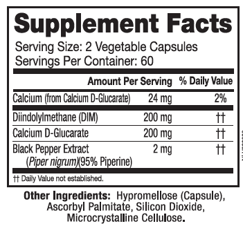 Теперь с 200 мг DIM и 200 мг кальция D-Глюкарата на дозу! Дииндолилметан (DIM)-это соединение, полученное в результате переваривания индол-3-карбинола, содержащегося в крестоцветных овощах, таких как брокколи, брюссельская капуста, капуста и капуста. Доктор Леонард Бьелданес, Доктор Философии. из UC-Berkley первым открыл биологический механизм действия DIM благодаря его роли в здоровом метаболизме эстрогенов и уникальным иммуномодулирующим свойствам.*