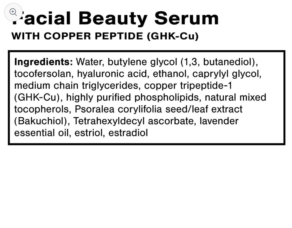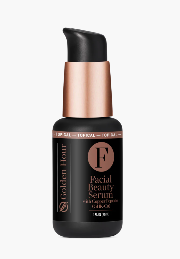 - Трипептид меди, GHK-Cu: Это замечательный восстанавливающий пептид , способствующий выработке коллагена и эластина для повышения эластичности и более сияющего цвета лица .