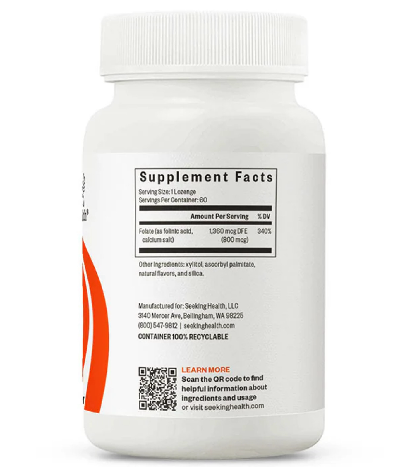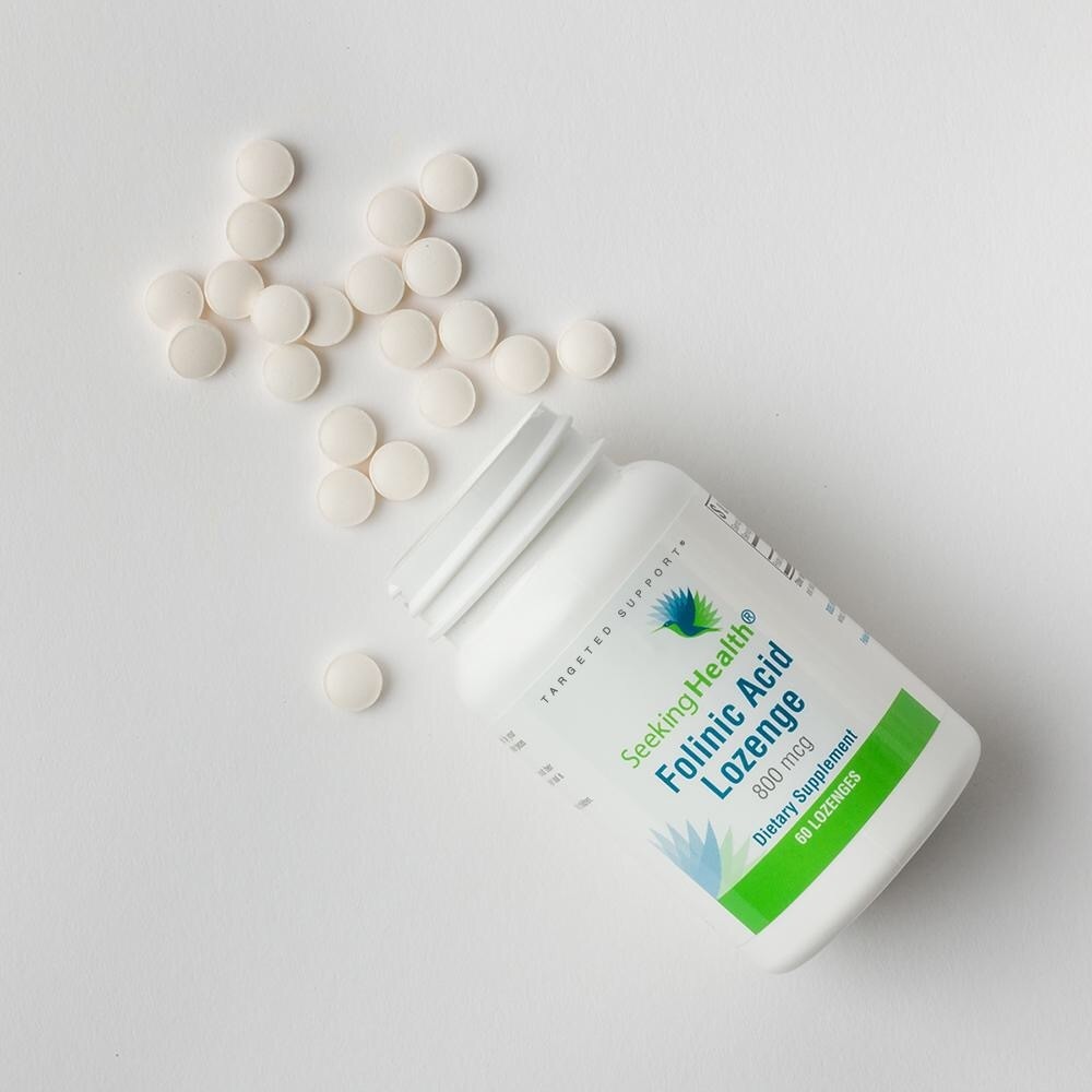 Таблетки с фолиевой кислотой, применяемые в целях здоровья, обеспечивают 1360 мкг DFE (800 мкг) чистого биодоступного фолата в виде соли кальция фолиевой кислоты на таблетку. Эта форма фолата (витамин В9) быстро превращается в L-метилфолат, преобладающую форму фолата, циркулирующую в организме. Людям, чувствительным к метилированным питательным веществам, может быть легче переносить его, чем дополнительный L-метилфолат. Фолиевая кислота необходима для деления клеток, роста и образования новых красных кровяных телец. Фолиевая кислота может легко превращаться в любую из других активных форм фолата по мере необходимости в организме.*