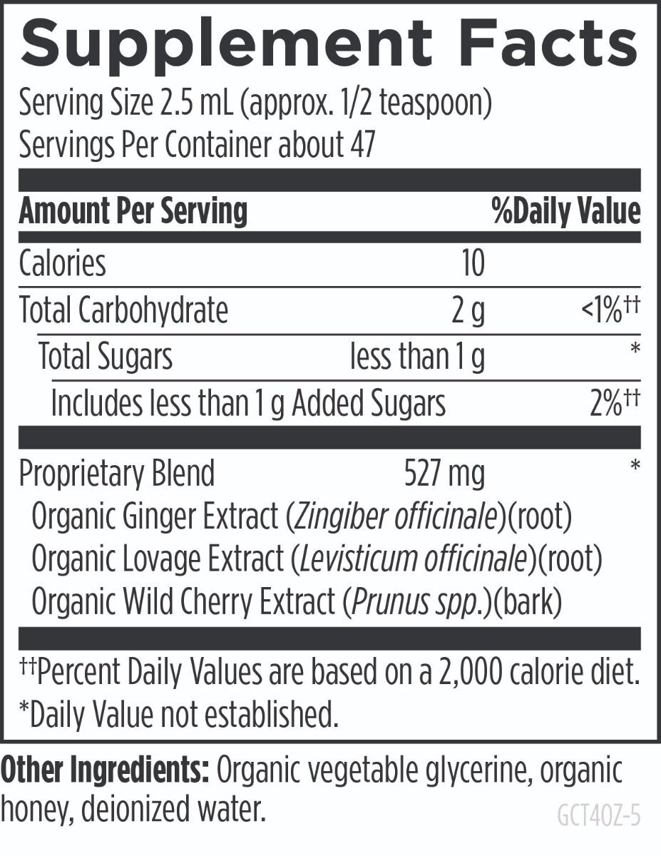 Органический сироп Ginger-Tussin™ - это приятный на вкус травяной эликсир, который успокаивает горло и поддерживает периодический кашель.* В его состав входят органический имбирь, полынь и экстракт дикой вишни, поддерживающие иммунную функцию и антиоксидантный статус.* Основа этого сиропа - сертифицированный органический растительный глицерин и сертифицированный органический мед.Рекомендации по применению: Принимайте 2,5 мл (примерно ½ чайной ложки) в день или по указанию вашего лечащего врача.* Эти заявления не были оценены Управлением по контролю за продуктами и лекарствами. Данный продукт не предназначен для диагностики, лечения, излечения или профилактики каких-либо заболеваний.