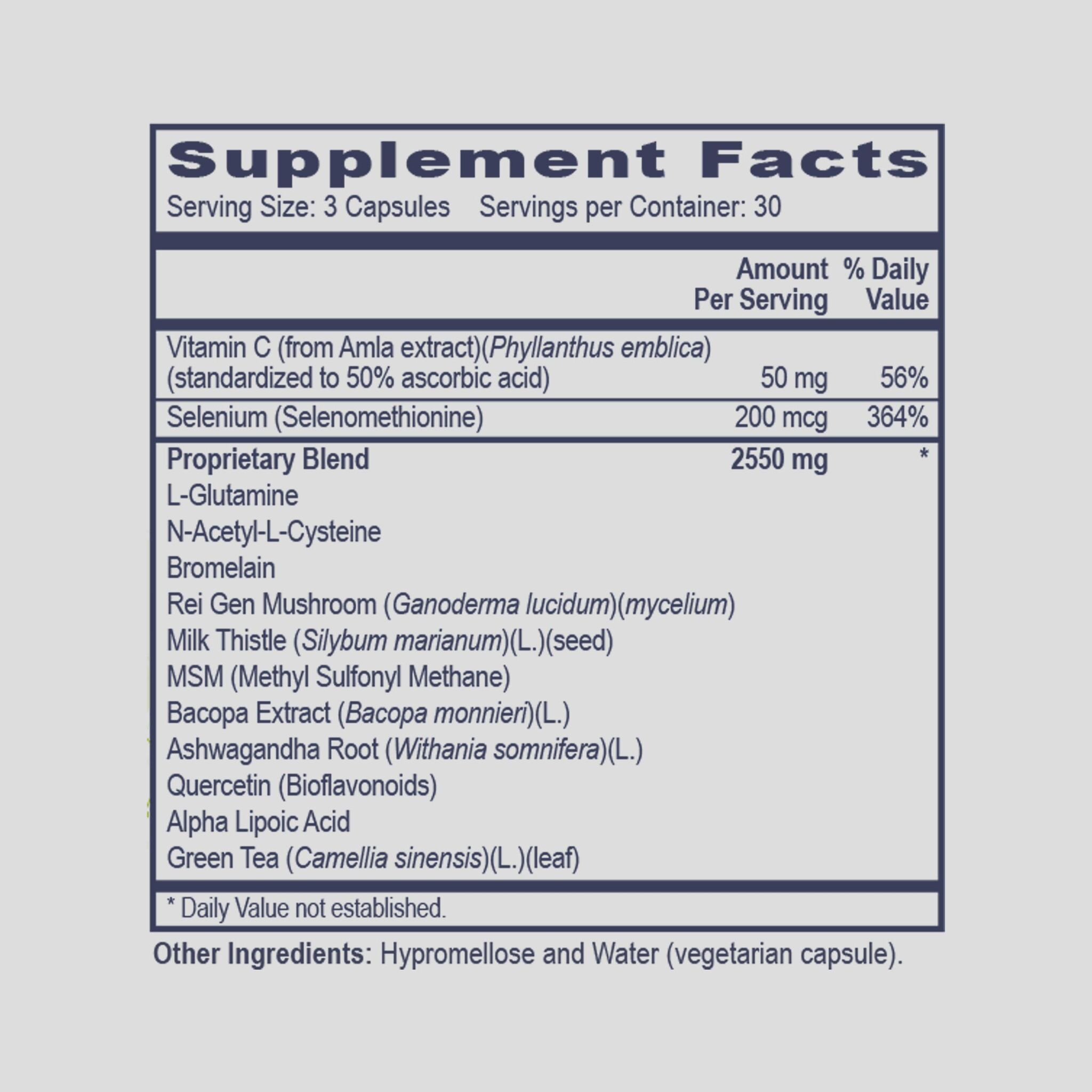 Glutathione Accelerator - это уникальная формула, содержащая питательные вещества для поддержки выработки глутатиона (GSH). В состав этого продукта входят: Набор мощных антиоксидантов - витамин С из плодов амлы, кверцетин, альфа-липоевая кислота и экстракт зеленого чая. Селен, минерал, необходимый для производства GSH, и L-глютамин, предшественник GSH. Питательные вещества, поддерживающие печень, - МСМ, гриб Рей-Ген и молочный чертополох. Адаптогенные травы - бакопа и ашвагандха.