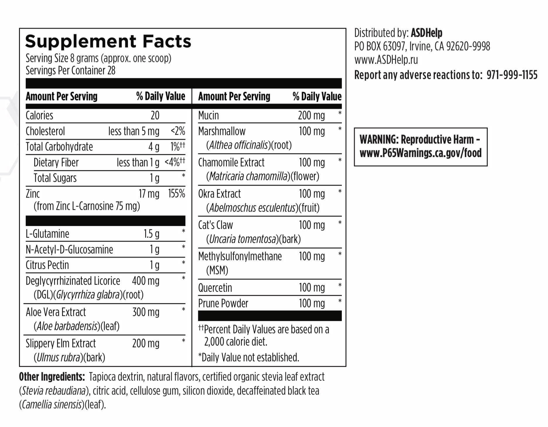 DGL, Алоэ вера, Вяз скользкий, алтей, ромашка, бамия и Кошачий коготь