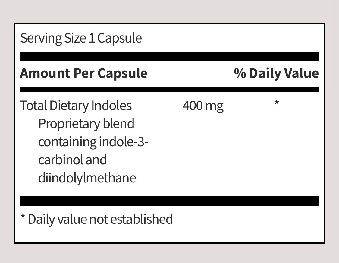 Пищевые соединения индола, содержащиеся в брокколи, капусте и других крестоцветных овощах, оказывают сильное защитное действие на такие ткани, как грудь, шейка матки и предстательная железа, которые наиболее восприимчивы к воздействию нежелательных метаболитов эстрогена, таких как 16-альфа-гидроксиэстрон. Соединения индола благоприятно влияют на метаболизм стероидных гормонов и помогают сбалансировать эстроген в пользу 2-гидроксиэстрона, защитного метаболита эстрогена.† Пищевые индолы также стимулируют ферменты детоксикации печени, защищают ДНК и регулируют прогрессирование клеточного цикла.† Индол-3-карбинол (I3C), наиболее известный пищевой индол, легко расщепляется в присутствии желудочной кислоты на дииндолилметан (DIM) и другие связанные индольные соединения, которые впоследствии всасываются. Indole Forté™ содержит I3C, DIM и другие индолы для широкой защиты.