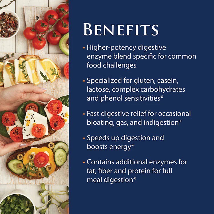 В отличие от пищевой аллергии, которая является иммунной реакцией, пищевая непереносимость - это нарушение пищеварения, вызванное недостаточным количеством определенного фермента для переваривания вредной пищи. Непереносимость может проявляться в виде случайной диареи, вздутия живота, спазмов или расстройства желудка. Дополняя пищеварительную систему целевыми ферментами, организм может более эффективно расщеплять пищу, чтобы уменьшить или предотвратить симптомы, характерные для пищевой непереносимости.* Комплекс непереносимости дает вашему организму то, что ему нужно, чтобы наслаждаться любимыми продуктами.