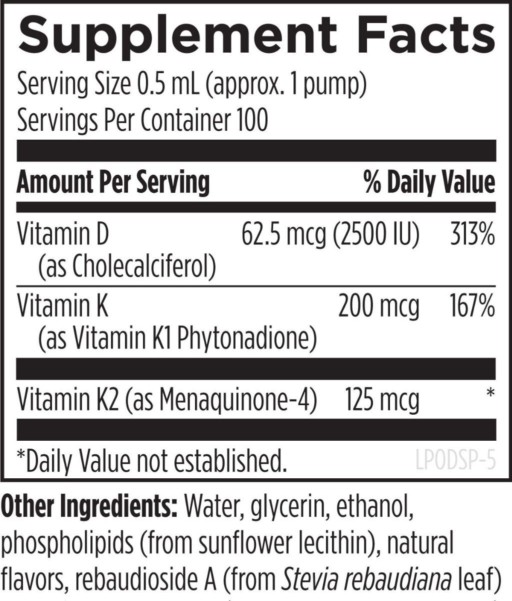 Liposomal D Supreme - это витамины D и K, созданные по липосомальной технологии. Витамин D необходим для здоровой иммунной системы, а витамины D и K действуют синергетически, поддерживая здоровье костей и правильный баланс кальция в организме.* Липосомы - это сферы, состоящие из фосфолипидов - основных строительных блоков клеточных мембран. Благодаря такой структуре липосомы легко соединяются с клеточными мембранами и облегчают внутриклеточную доставку питательных веществ. Благодаря этой улучшенной системе доставки питательные вещества, поставляемые в липосомальной форме, отличаются превосходным усвоением и биодоступностью. Каждая порция 0,5 мл (1 помпа) этой формулы со вкусом цитрусовых обеспечивает 2500 МЕ витамина D3 и 325 мкг витамина K (как K1, так и K2).Рекомендации по применению: Возьмите 0,5 мл (примерно 1 помпа) и подержите во рту в течение 30 секунд перед проглатыванием или по указанию вашего практикующего врача.Предупреждение: Если вы принимаете кумадин, варфарин или другие антикоагулянтные препараты, проконсультируйтесь с вашим лечащим врачом перед использованием этого продукта. * Эти заявления не были проверены Управлением по контролю качества пищевых продуктов и лекарственных средств. Данный продукт не предназначен для диагностики, лечения, излечения или профилактики каких-либо заболеваний.
