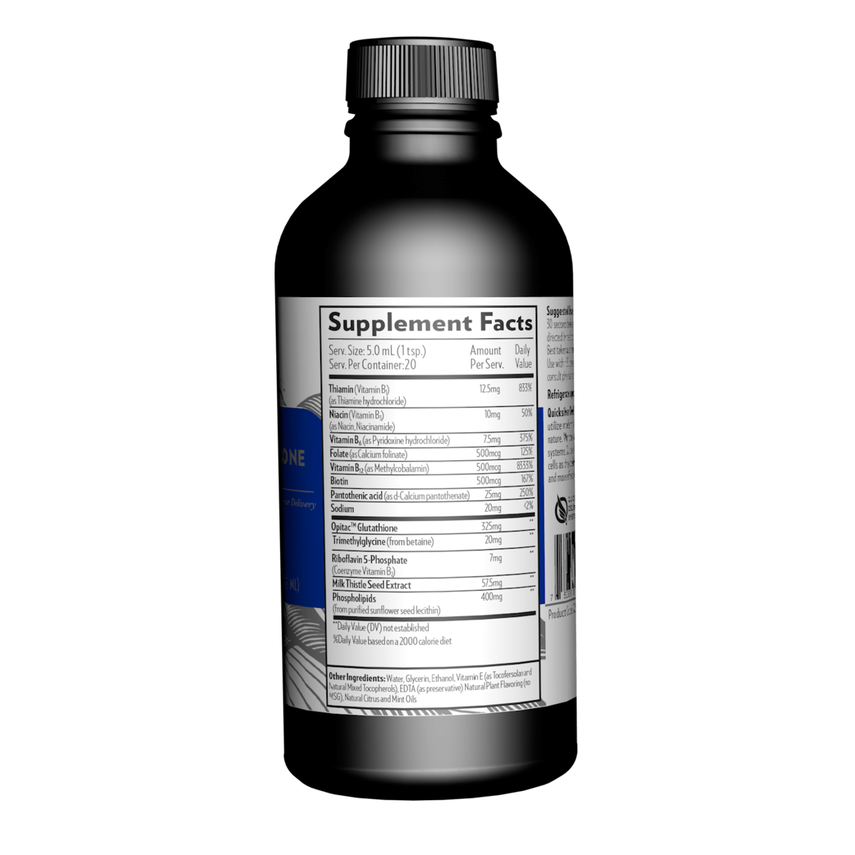 Каждая 5 мл липосомального глутатионового комплекса содержит 325 мг глутатиона OpitacTM, 57,5 мг наночастиц расторопши, 25 мг бетаина безводного (триметилглицина) и полный набор высокобиодоступных витаминов группы В. Размер порции составляет 1 чайную ложку. Каждая бутылка содержит 20,5 мл порций.