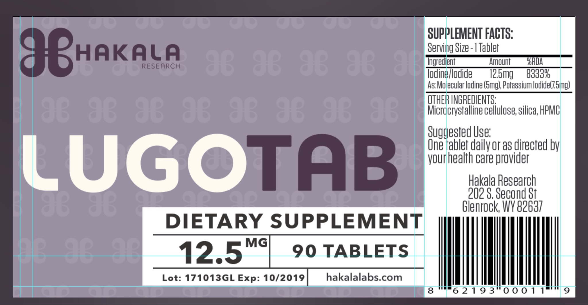 Основатель Hakala Research Laboratory, Джей Чарльз Хакала, RPh, был членом первоначальной команды "Йодного проекта" вместе с Гаем Абрахамом, доктором медицины, Хорхе Флехасом, доктором медицины, и Дэвидом Браунштейном, доктором медицины. Его 40-летний опыт в области компаундирования сыграл важную роль в преобразовании жидкого раствора йода Люголя в LugoTab, таблетированную йодную добавку. И по сей день он продолжает следить за производством и контролем качества каждой небольшой партии. LugoTab - это усовершенствованный вариант оригинального рецепта молекулярного йода/калия йодида. Компания Hakala Research предлагает таблетки в пяти вариантах: 3,125 мг, 6,25 мг, 12,5 мг, 25 мг и 50 мг.