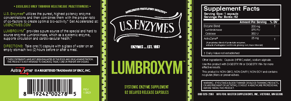Lumbroxym™ представляет собой смесь двух системных ферментов Люмброкиназы и каталазы с Astrazyme®, запатентованной смесью, которая усиливает поглощение и активность ферментов.* Чистая люмброкиназа является труднодоступным источником и особенно дорогим протеолитическим ферментом, который, как было показано, поддерживает здоровье сердечно-сосудистой системы и системы кровообращения.*