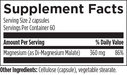 Малат магния - это высокобиодоступная форма магния. Каждая порция из 2 капсул содержит 360 мг магния в виде ди-магния малата, который представляет собой магний, связанный с яблочной кислотой. Магний - один из самых важных минералов в организме человека, который участвует в сотнях ферментативных реакций. Яблочная кислота - это соединение, естественным образом содержащееся в яблоках и других фруктах и овощах. Она включена в состав данного продукта благодаря своей роли в цикле Кребса, который является системой производства энергии в организме.