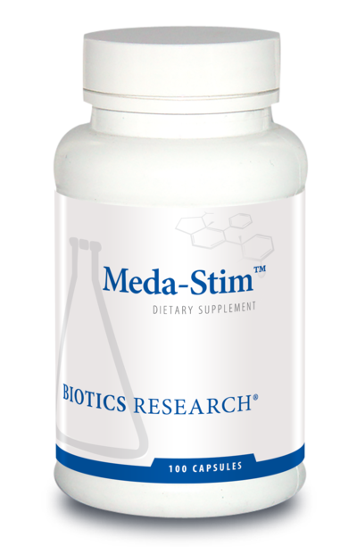 Meda-Stim™ содержит витамины, минералы, аминокислоты и растительные компоненты для поддержания нормального преобразования гормонов щитовидной железы, Т-4 в Т-3. В кровотоке Т3 и Т4 переносятся тиреоин-связывающим глобулином, тироксин-связывающим преаблюмином и сывороточным альбумином. Т4 превращается в Т3 в печени, легких, почках и сердце под действием селен-зависимого фермента, называемого йодтиронин-5'монодейодиназой. Затем Т3 поглощается соответствующими клетками-мишенями, где он транспортируется в ядро для активации транскрипции.