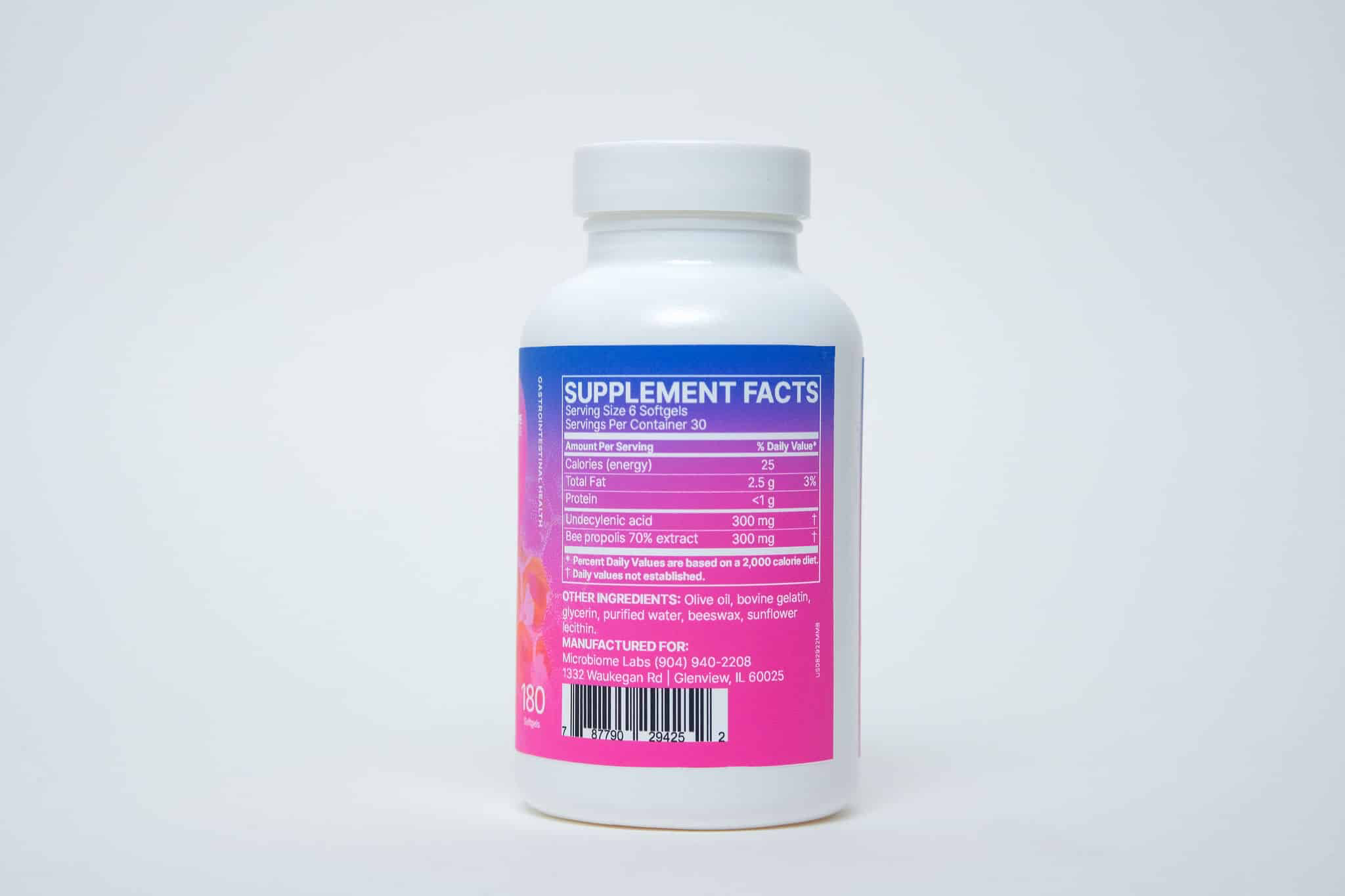 Ундециленовая кислота - это органическая жирная кислота, получаемая из масла касторовых бобов, которая поддерживает здоровый баланс дрожжей в кишечнике. Пчелиный прополис - это растительная смола, которую пчелы используют для облицовки своих ульев.