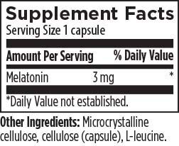 Основная функция мелатонина - регулировать сон, контролируя цикл сон-бодрствование. Эта добавка может помочь поддержать качество сна и реакцию организма на изменение часового пояса.* Различные факторы могут вызвать снижение уровня мелатонина, такие как недостаточное потребление питательных кофакторов, низкий уровень серотонина, нормальное старение, недостаточное воздействие естественного света и некоторые лекарственные препараты. Мелатонин может поддерживать здоровый иммунитет и реакцию на стресс.* Каждая капсула содержит 3 мг мелатонина, способствующего спокойному сну.*