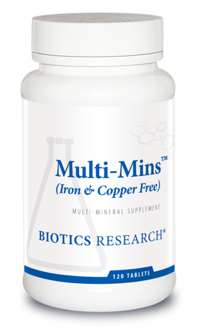 Multi-Mins™ Iron & Copper Free - это сбалансированный источник минеральных хелатов и фитохимически связанных микроэлементов из цельных продуктов питания в сочетании с антиоксидантными ферментами SOD и каталазой. Также содержит небольшое количество бетаина HCl для облегчения усвоения. Его можно использовать в тех случаях, когда показан мультиминеральный комплекс. Эта формула не содержит железа и меди.