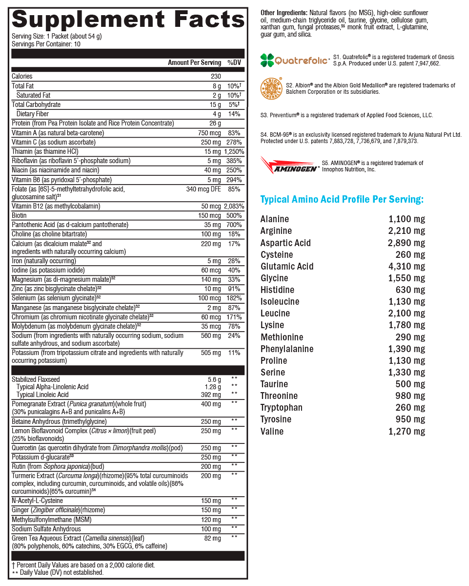 Другие ингредиенты: Натуральные ароматизаторы (без MSG), высокоолеиновое подсолнечное масло, среднецепочечное триглицеридное масло, таурин, глицин, целлюлозная камедь, ксантановая камедь, грибковые протеазы, экстракт плодов монаха S5, L-глютамин, гуаровая камедь и кремнезем.