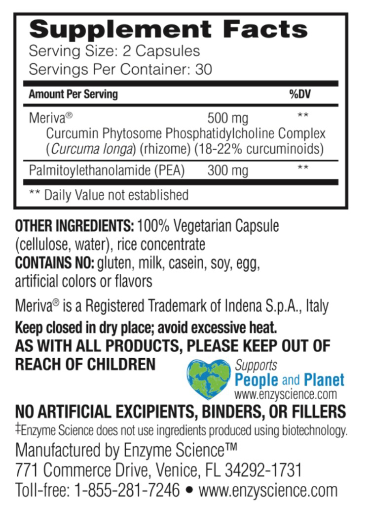 Enzyme Science предлагает (PEA) +, уникальную смесь PEA из семян сафлора, в сочетании с хорошо исследованным, запатентованным и высоко биодоступным куркумином, фитосомой Meriva.