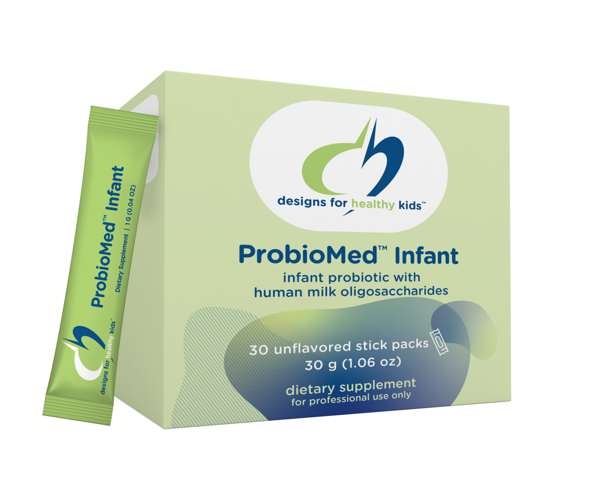 ProbioMed™ Infant - это синергетическая комбинация пробиотиков, содержащая 5 миллиардов колониеобразующих единиц (КОЕ) на порцию. В ее состав входят семь разнообразных, хорошо изученных штаммов пробиотических бактерий Lactobacillus и Bifidobacterium, олигосахариды человеческого молока и смесь пищеварительных ферментов, созданная на основе компонентов грудного молока человека. Эта индивидуальная смесь идеально подходит для детей, находящихся на молочном вскармливании, и предназначена для мягкого поддержания микробного баланса желудочно-кишечного тракта, иммунной функции и здоровья пищеварения.* Этот продукт выпускается в виде палочек без вкуса, наполненных порошком, которые легко смешивать с жидкостями.Рекомендации по применению: Добавляйте 1 палочку (1 грамм) в грудное молоко, детскую смесь, молоко или сок в день или по указанию вашего лечащего врача.* Эти заявления не были проверены Управлением по контролю качества пищевых продуктов и лекарственных средств. Данный продукт не предназначен для диагностики, лечения, излечения или профилактики каких-либо заболеваний.