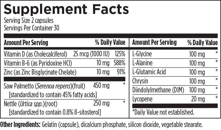Prostate Supreme™ обеспечивает комплексную поддержку для оптимального здоровья и функционирования предстательной железы.* Этот препарат поддерживает здоровый баланс гормонов, участвующих в здоровье простаты, и обеспечивает целевую питательную поддержку и соединения с антиоксидантными свойствами.* Prostate Supreme™ подходит для мужчин 45 лет и старше, чтобы помочь поддержать здоровую функцию простаты.*Примечание: Если уровень дигидротестостерона (ДГТ) у пациента нормальный, низкий или неизвестный, рассмотрите Prostect™ в качестве альтернативного продукта, так как он не включает в себя saw palmetto, который не снижает уровень ДГТ.* Рекомендуемое применение: Принимайте по 2 капсулы в день во время еды или по указанию вашего лечащего врача.* Эти заявления не были оценены Управлением по контролю за продуктами и лекарствами. Данный продукт не предназначен для диагностики, лечения, излечения или профилактики каких-либо заболеваний.