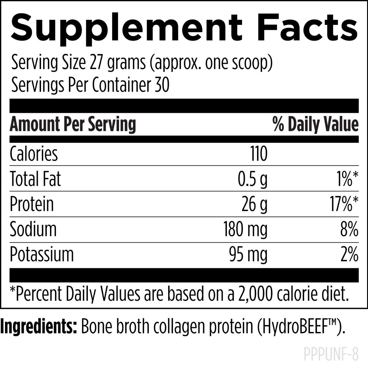 Bone Broth Protein - это вкусный безмолочный порошок, содержащий от 21 до 26 граммов белка на порцию в зависимости от вкуса. В его состав входит HydroBEEF™ - высококонцентрированный, богатый коллагеном изолят говяжьего белка, полученный с помощью эксклюзивного процесса гидролиза для лучшего переваривания и усвоения. Содержащий более 95 % белка и показатель белкового азота выше 100, он содержит все незаменимые аминокислоты и строительные блоки коллагена, естественно содержащиеся в говядине, в биодоступном формате. Этот продукт, полученный из откормленного на траве шведского скота, выращенного без гормонов и ГМО, идеально подходит для людей, ищущих полноценный немолочный протеин для поддержания мышечной массы, состава тела и спортивных результатов.*
