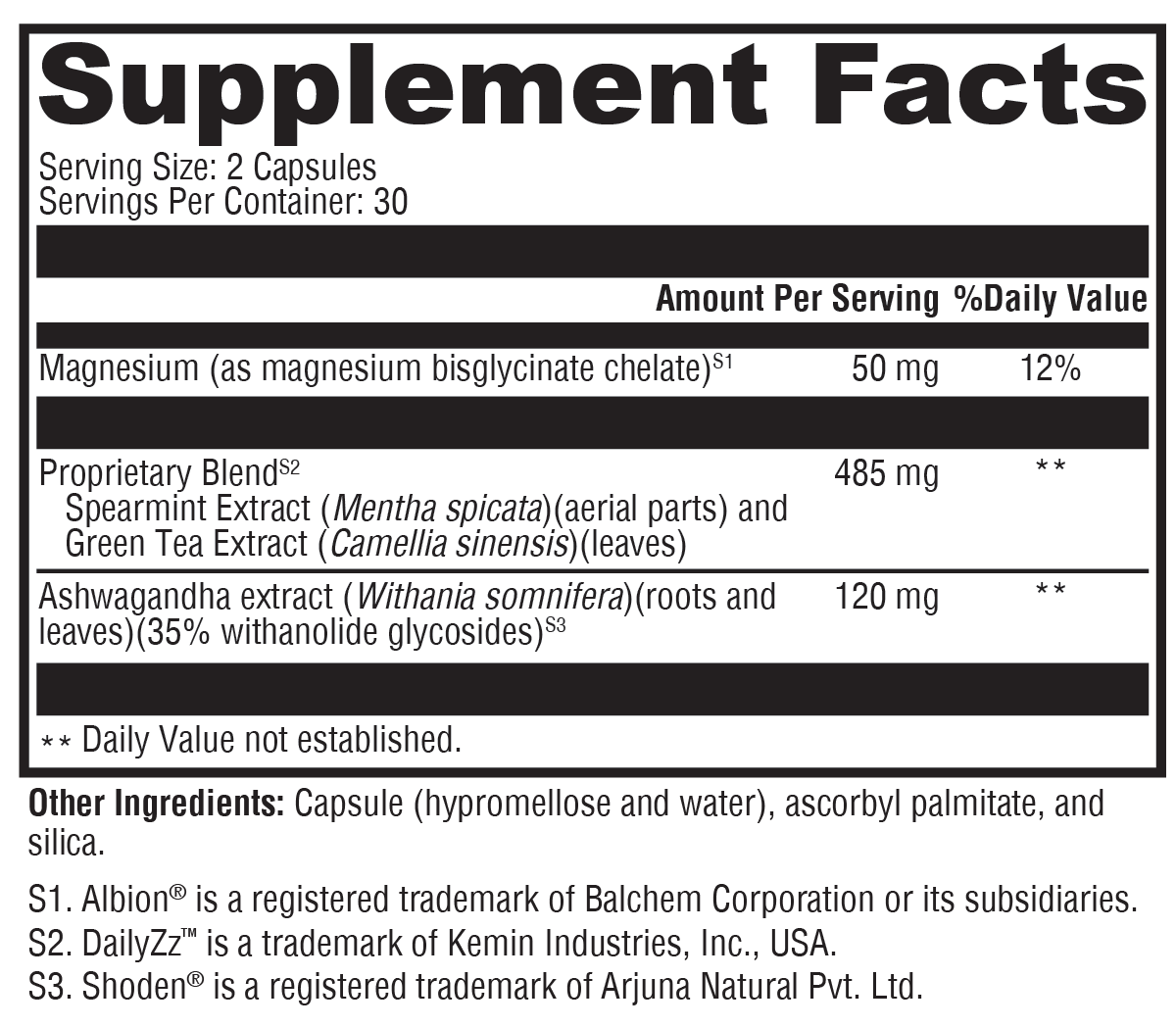 Включает смесь полифенолов Daily Zz™ с экстрактами мяты и зеленого чая для улучшения качества сна и когнитивных функций*