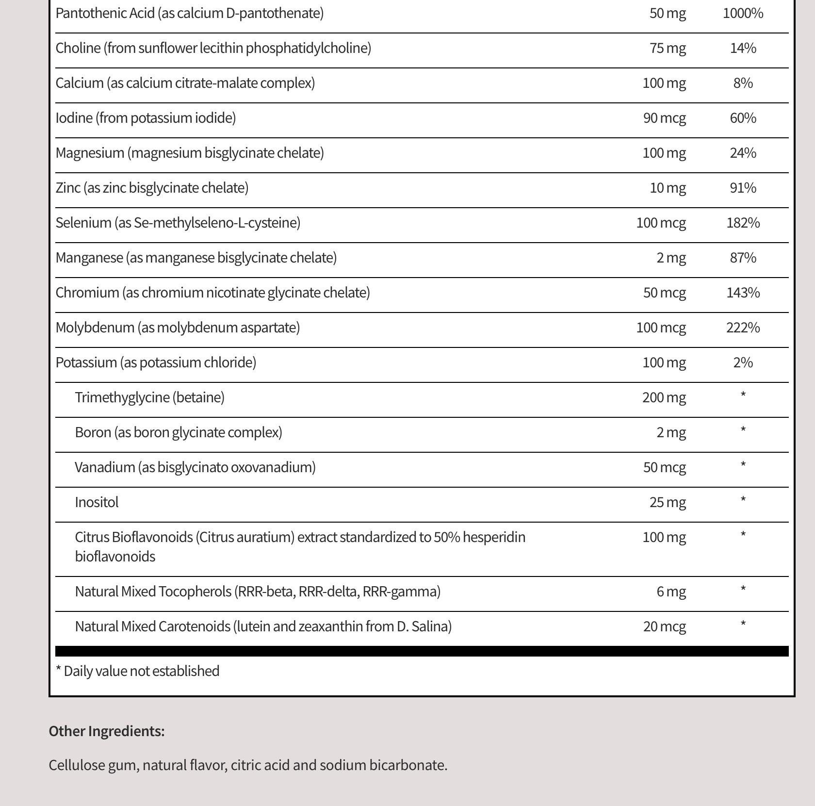 Легко усваиваемые и усваиваемые питательные вещества в легкодоступных формах, включая холин, фолиевую кислоту, витамины В12 и В6, а также природные каротины, витамины Е и D