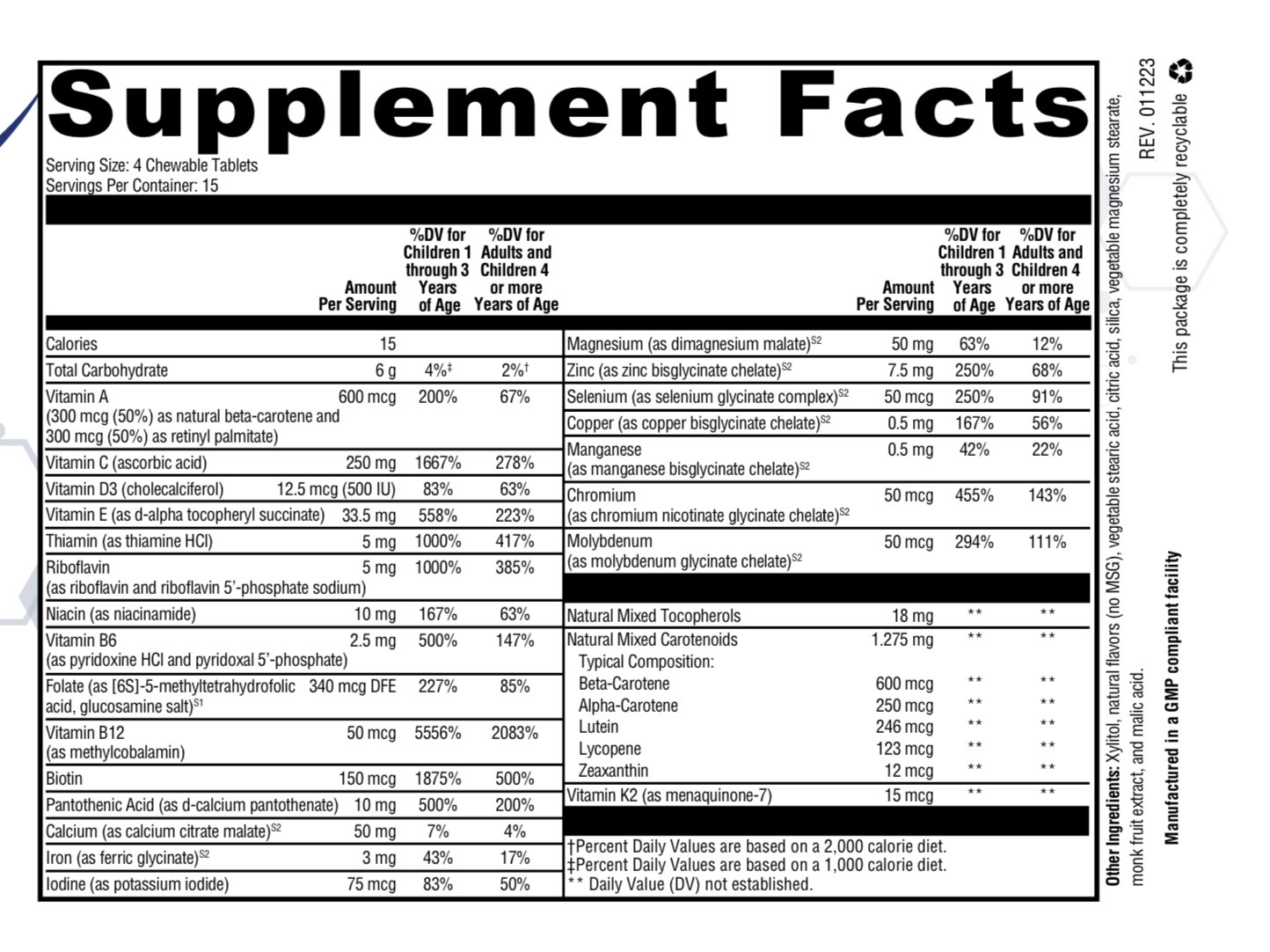 SPECTRUM FORMULA + Iron Chewable разработана для удовлетворения потребностей детей в питательных веществах для роста, развития и поддержания жизненной силы, а также для восполнения дефицита питательных веществ, который обычно возникает в результате неоптимального питания. Каждая таблетка с великолепным вкусом содержит 23 важных витамина и минерала в активных, высоко биодоступных формах и не содержит искусственных красителей и ароматизаторов, консервантов и кукурузного сиропа с высоким содержанием фруктозы.