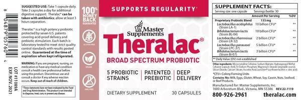 Theralac содержит ЛактоСтим®, запатентованный пребиотик, который эффективно увлажняет сублимированные пробиотические клетки и обеспечивает пробиотическое питание.