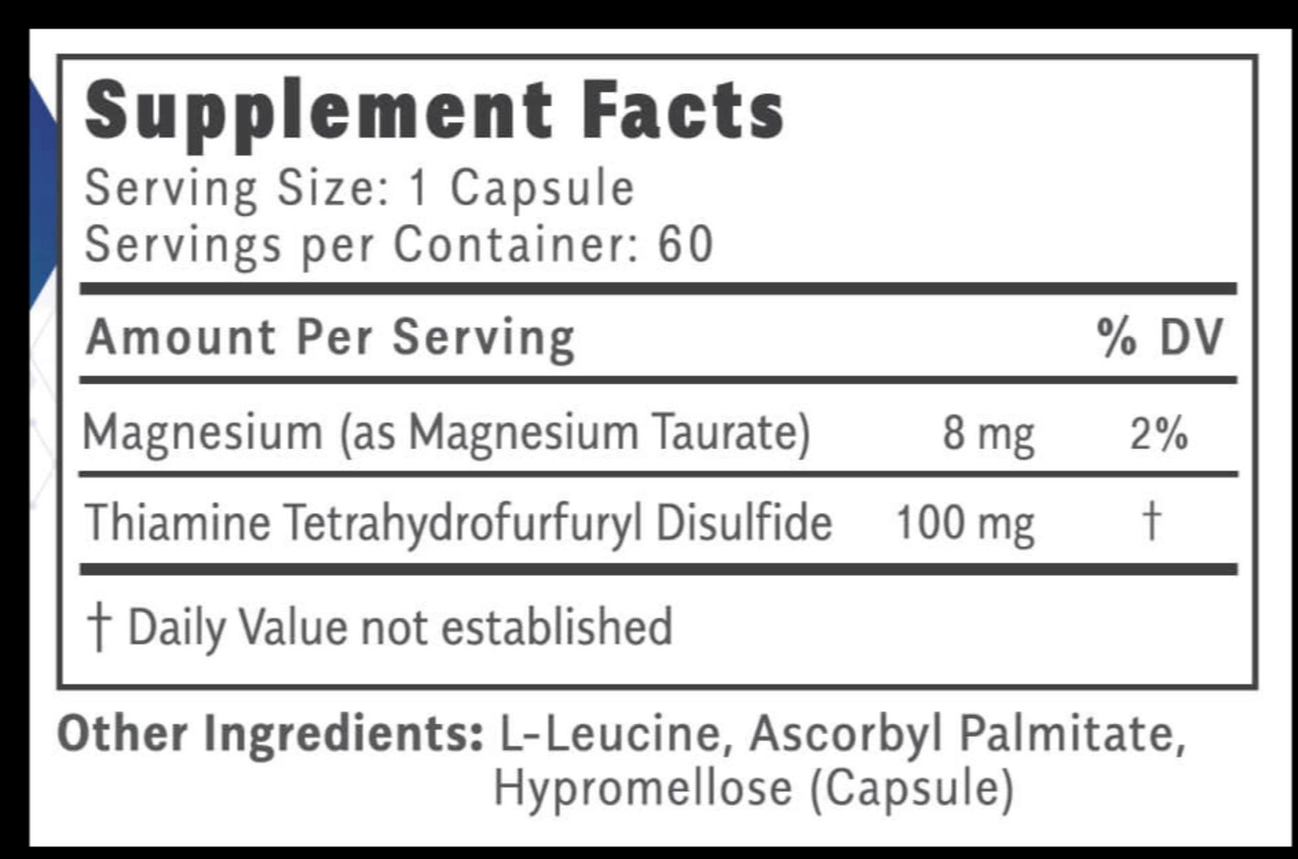 Благодаря своей превосходной биодоступности, TTFD можно принимать в гораздо меньших дозах, чем то, что считается “терапевтической дозой” других форм, таких как соли тиамина. Тиамакс также содержит небольшое количество магния (в виде таурата магния), который является минералом, важным для поддержания того, как клетки могут использовать тиамин.
